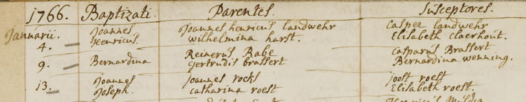 Joannes(Jan) Joseph Roks [1.3], Jan is gedoopt op maandag 13 januari 1766 in Amsterdam.