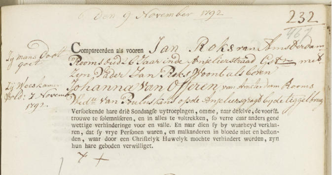 Jan trouwde, 26 jaar oud, op vrijdag 9 november 1792 in Amsterdam met,