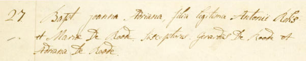 De doopgetuigen waren : Gerardus de Roode en Adriana de Roode.