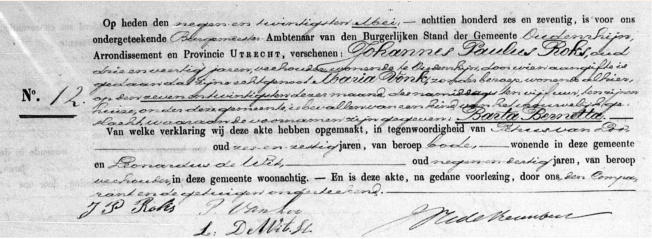 Jonkheer Johan Willem Schorer, 45 jaar oud. Bij het burgerlijk huwelijk waren als getuigen