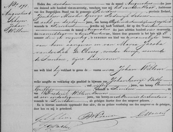 geboorte is aangifte gedaan op donderdag 6 augustus 1874 met als getuigen: Johan George