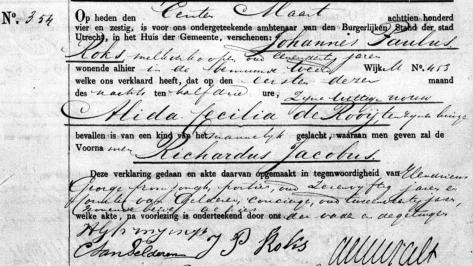 Aangifte van de geboorte is gedaan door Johannes