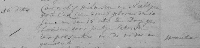 Parenteel van den Hof(f)Generatie IIWouter Cornelissen van den Hoff [1.8],hij is geboren op maandag 10 januari en gedoopt op zondag 16 januari 1774 in Renkum.Zoon van Cornelis Willemsen (van den Hoff) [1] en Neeltjen van Eck.Wouter is overleden.Geloof: Gereformeerd.
