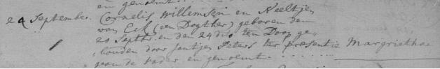 Parenteel van den Hof(f)Generatie IIMargrietha Cornelissen van den Hoff [1.9],zij is geboren op woensdag 20 september en gedoopt op zondag 24 september 1775 in Renkum.Dochter van Cornelis Willemsen (van den Hoff) [1]en Neeltjen van Eck.Margrietha is overleden.Geloof: Gereformeerd.Beroep: onbekend.
